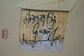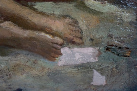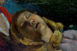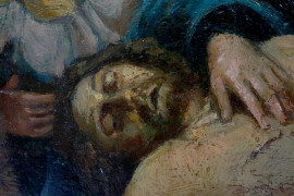 Compianto sul Cristo morto, olio su tavoletta, cm 28,5x44, firmato a tergo, (difetti)
