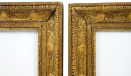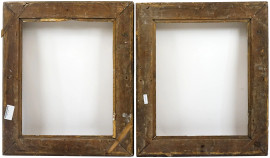 Coppia di cornici di linea rettangolare, XIX secolo, misure ingombro 61x52,5, misure luce cm 47,5x39,5, (difetti).