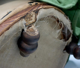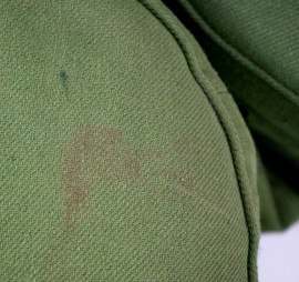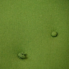 Coppia di poltrone ed un puff rivestiti in tappezzeria verde, fine XIX-inizi XX secolo, alt. max cm 87, (difetti e macchie).