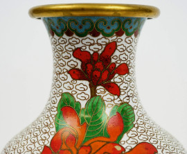 Coppia di vasetti cloisonné con decori floreali policromi, Cina, XX secolo, cm h 23,5, (lievi difetti).