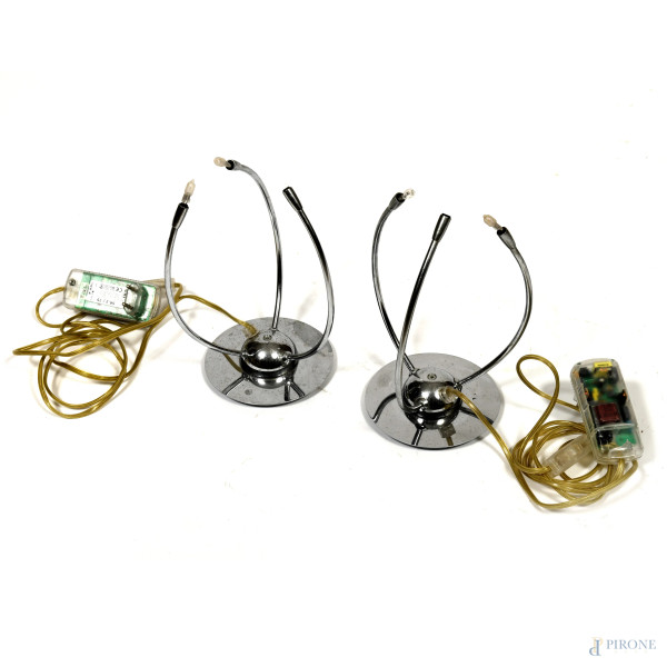 Coppia di vasetti in vetro con collo allungato e profilo bordeaux, cm h 15, XX secolo, (piccole sbeccature).