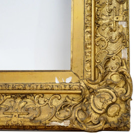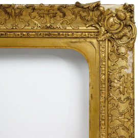 Cornice in legno intagliato e dorato, Inghilterra, XIX secolo, misure ingombro cm 101,5x68, luce cm 82,5x49,5, (difetti).