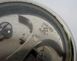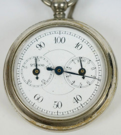 Cronometro con cassa in metallo, quadrante smaltato, cm 7x5, XX secolo, (meccanismo da revisionare).