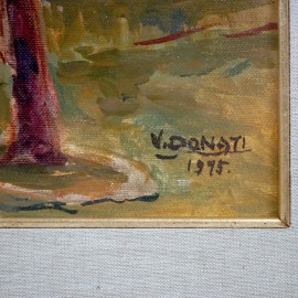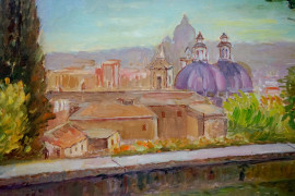Tramonto dal Pincio, olio su tela, cm 40,5x80, entro cornice