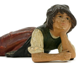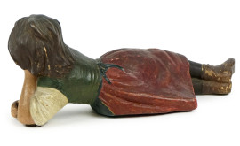 Fanciulla distesa, scultura in gesso dipinto, cm h 9x21, inizi XX secolo, (lievi difetti).