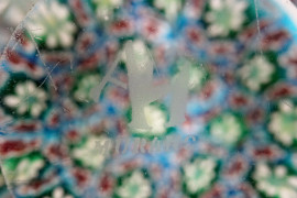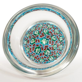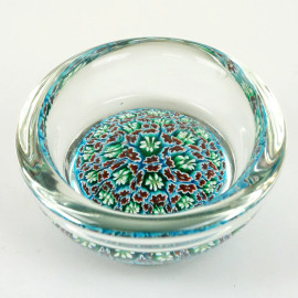 Fermacarte in vetro di Murano con murrine, XX secolo, cm h 5, diam.cm 10, (graffi).