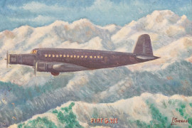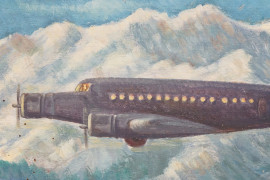 Fiat G 212, olio su compensato, cm 27,5x40, firmato L. Farnesi, entro cornici, (lievi difetti).