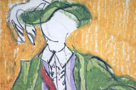 Gentiluomo, disegno a pastello su carta, cm 66x32, firmato, (difetti).