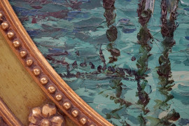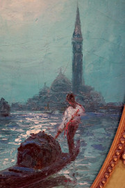 Gondola al chiaro di luna, olio su tela, cm 70x49, firmato Giordani, entro cornice ad assetto ovale.