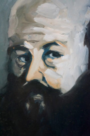 Il saggio, olio su tela, cm 19x13,5, firmato Papisca, entro cornice