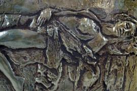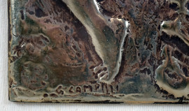 Lastra in metallo raffigurante nudo di donna, cm 37,5x25,5, firmata G.Campilli, entro cornice.