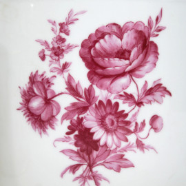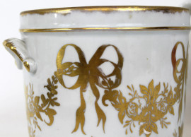 Lotto composto da due cachepot in porcellana, decori a motivi floreali burgundy e dorati, misure massime cm h 17x23, Richard Ginori e Pillivuyt France, (difetti).