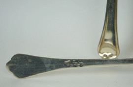 Lotto composto da quattro posate da portata in metallo argentato, lunghezza max cm 30
