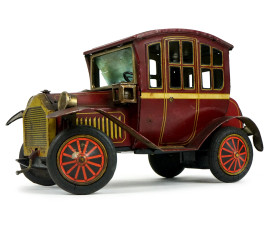 Lotto composto da tre modellini di autovetture in materiali diversi, misure max cm 8x33x13, XX secolo, (difetti).