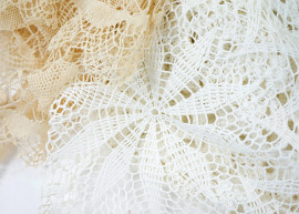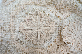 Lotto composto da un copriletto e vari centrini ricamati a mano, misure copriletto cm 270x250, (difetti)