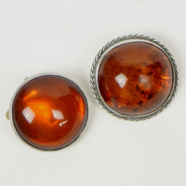 Lotto di due bottoni in argento 925 ed ambra, diam.cm 2
