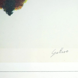 Lotto di due multipli su carta firmati Guttuso, misure max cm 24x19, entro cornici