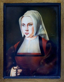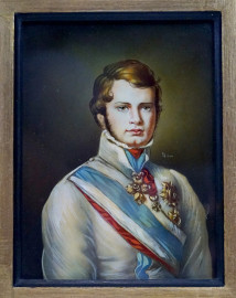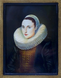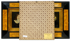 Lotto di quattro miniature raffiguranti ritratti di nobiluomini e nobildonne, cm 15x11, entro cornici.