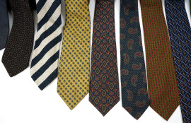 Lotto di undici cravatte da uomo a varie fantasie e firme, (segni di utilizzo).