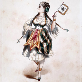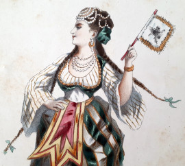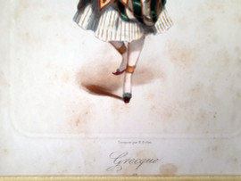M. Robin (XIX sec.) Grecque, rara immagine in cromolitografia raffigurante fanciulla in costume tradizionale, cm 31x22,5