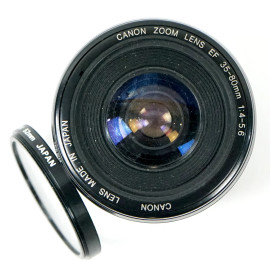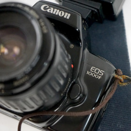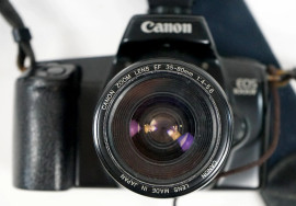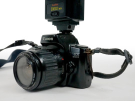 Macchina fotografica Canon EO51000F, completa di due obbiettivi 35-80, entro borsa a tracolla, (segni del tempo).