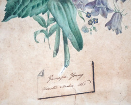 Mazzo di fiori, acquarello su carta, cm 32x20, firmato e datato Giuseppe Young 1861, entro cornice, (macchie sulla carta)