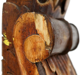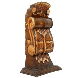 Mensola in legno intagliato a motivi fitomorfi, cm 44x26x13, XX secolo, (difetti).