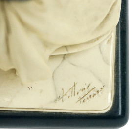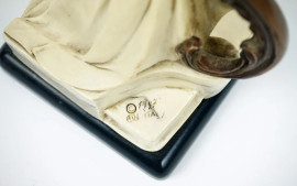 Modella, scultura in resina dipinta con glitter applicati, cm h 33, firmata.
