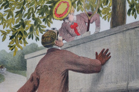 Moto-flirt, stampa a colori da Henri Georges Meunier (1873-1922), cm 66x45,5, entro cornice.