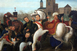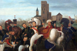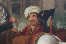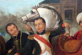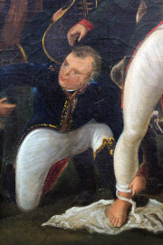 Napoleone ferito davanti a Ratisbona, olio su tela, cm 64x81, XIX secolo, entro cornice.