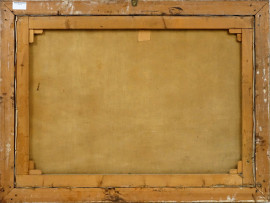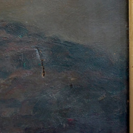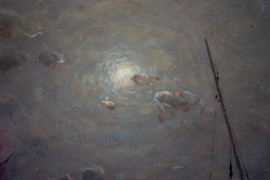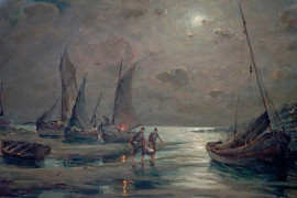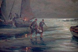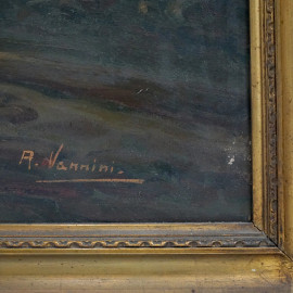 Notturno con pescatori, olio su tela, cm 70x100, firmato Vannini, entro cornice, (un difetto sulla tela).