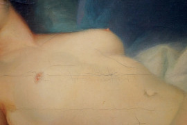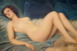 Nudo di donna distesa, olio su tela, cm 71x123,5, firmato Briari, entro cornice.