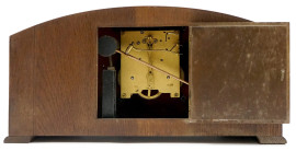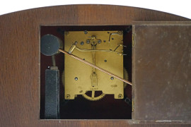 Orologio da camino in noce, inizi XX secolo, quadrante circolare a numeri arabi in metallo argentato, sportello anteriore in vetro, cm h 20x40x13, (meccanismo da revisionare)