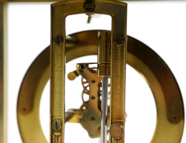 Orologio da tavolo, XX secolo, quadrante circolare a numeri romani, cassa di forma architettonica in metallo dorato e vetro, cm 20x14,5x9,5, (difetti, meccanismo da revisionare)