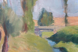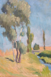 Paesaggio con alberi, olio su tela, cm 47x39,5, XX secolo, entro cornice, (mancante telaio)