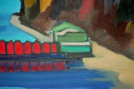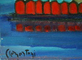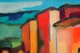 Paesaggio costiero, olio su tela, cm 50x60, firmato.