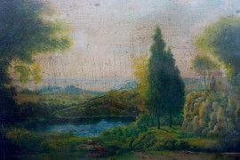 Paesaggio, olio su tavola, cm 20x25,5, XX secolo, entro cornice