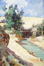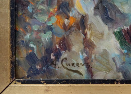 Paesaggio, olio su tavola, cm 38,5x29, firmato, entro cornice