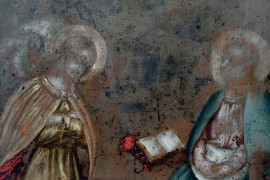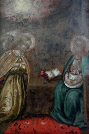 Pittore del XVII secolo, Annunciazione, olio su rame, cm 18x14, entro cornice, (difetti).