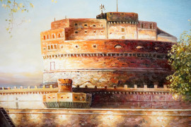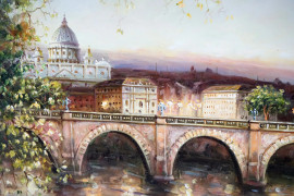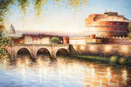 Ponte e Castel Sant'Angelo a Roma, olio su tela, cm 61x91, firmato, entro cornice.