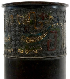 Porta ombrelli in bronzo a smalti cloisonnè, Cina, XX secolo, cm h 60,5
