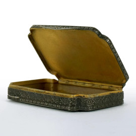 Portasigarette in argento e smalti policromi, cm h 1,5x8,5x5,5, inizi XX secolo, peso gr.70, (segni del tempo).
