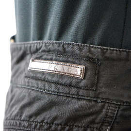 Prada, pantalone in stoffa color nero a vita bassa, (piccoli difetti).