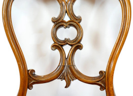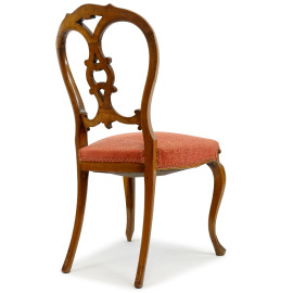 Quattro sedie in noce, XIX secolo, cartella a giorno, seduta imbottita, gambe anteriori mosse, le posteriori a sciabola, cm h 86