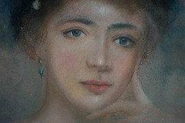 Ritratto di fanciulla, pastello su carta applicata su tavola, cm 67x52, firmato e datato a destra, entro cornice.