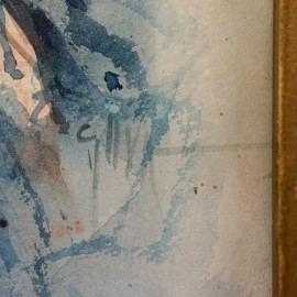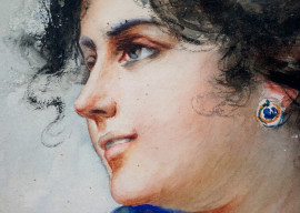 Ritratto di popolana, acquarello su carta, cm 35,5x25, firmato, entro cornice