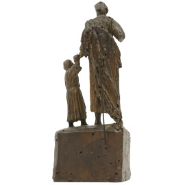 San Giuseppe con il Bambino, scultura in legno intagliato, cm h 19,5, XVIII secolo, (difetti).