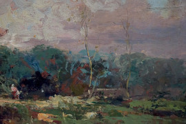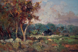 Scorcio campestre, olio su tavola, cm 50,5x70, firmato, entro cornice.