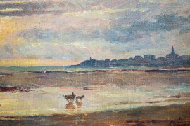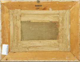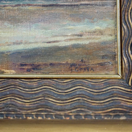 Scorcio di costa, olio su cartone telato, cm 17x27, firmato, entro cornice.
