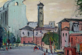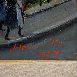 Scorcio di Roma, olio su masonite, cm 45x48, firmato Federico Cilia, entro cornice.